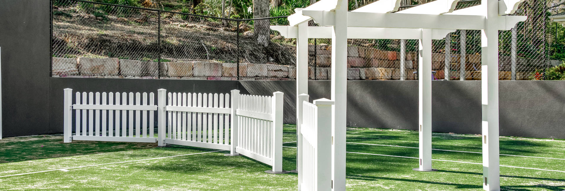 The PVC temporary panels are lightweight and can be configured in many different shapes and designs, with no gates needed so an adult can simply lift and open on end.